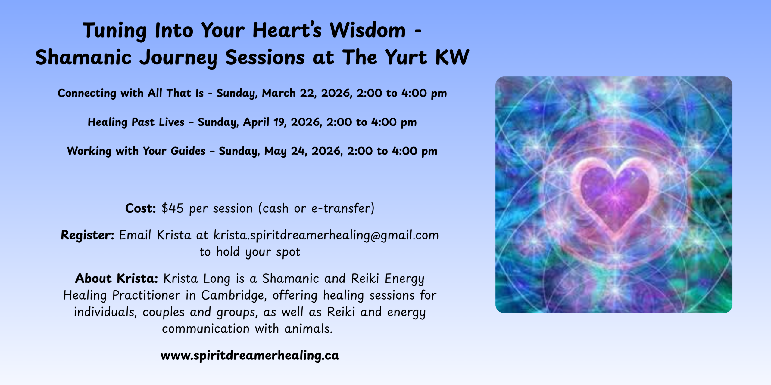 Join me at The Yurt KW for a series of heart-centred shamanic journey sessions. Save your spot by emailing me here.